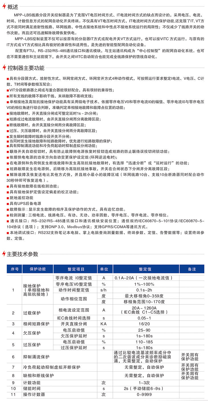MPP-LBS線路分段開關控制器(菜單設定方式)